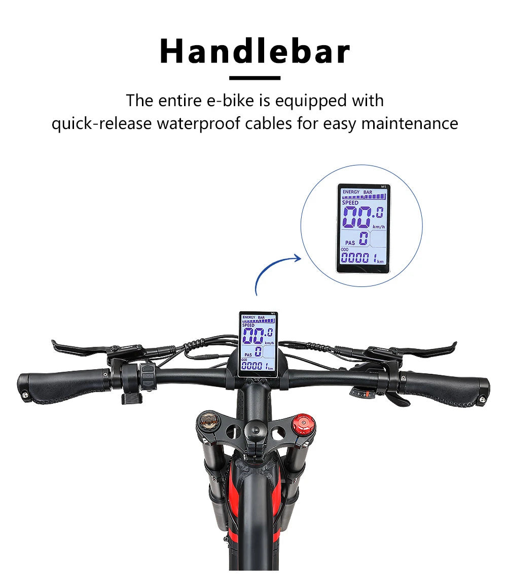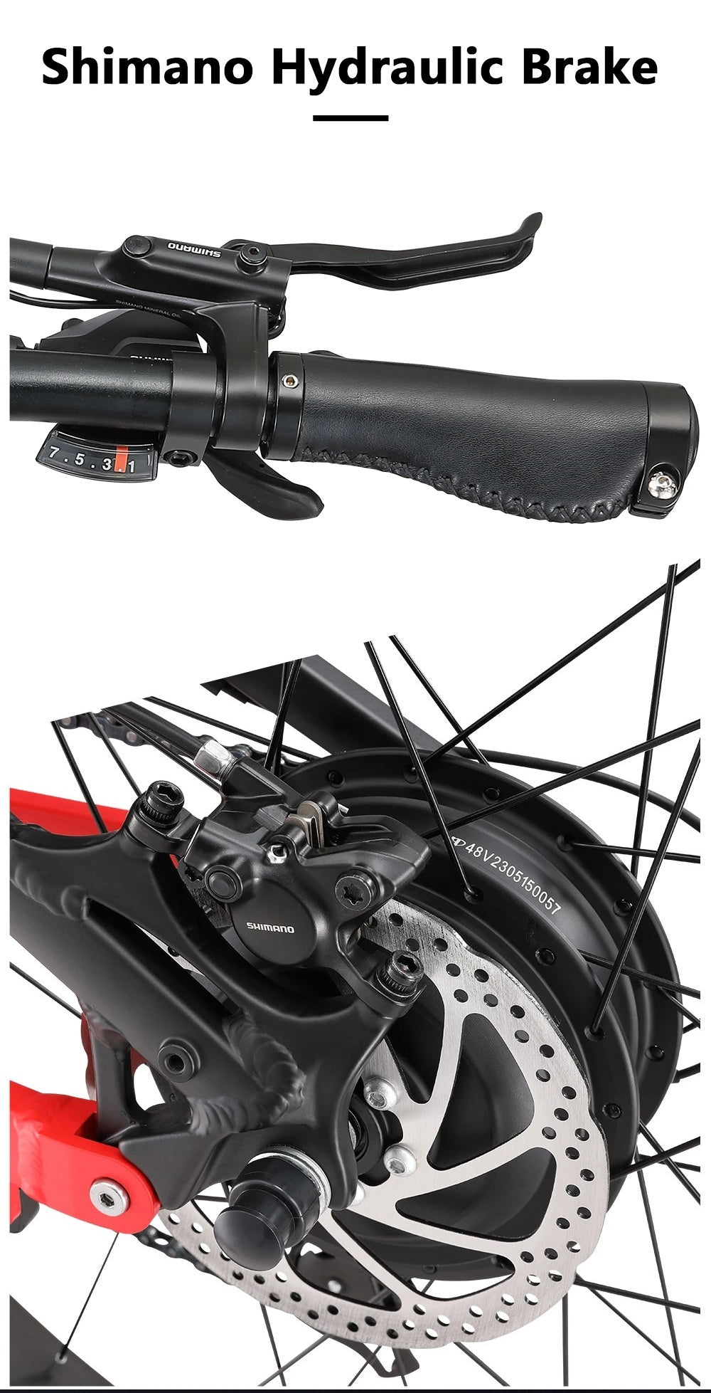 3. The powerful 1000W motor enables the electric bicycle to reach a maximum speed of 50 kilometers per hour and can cope with 40~ hillsides.