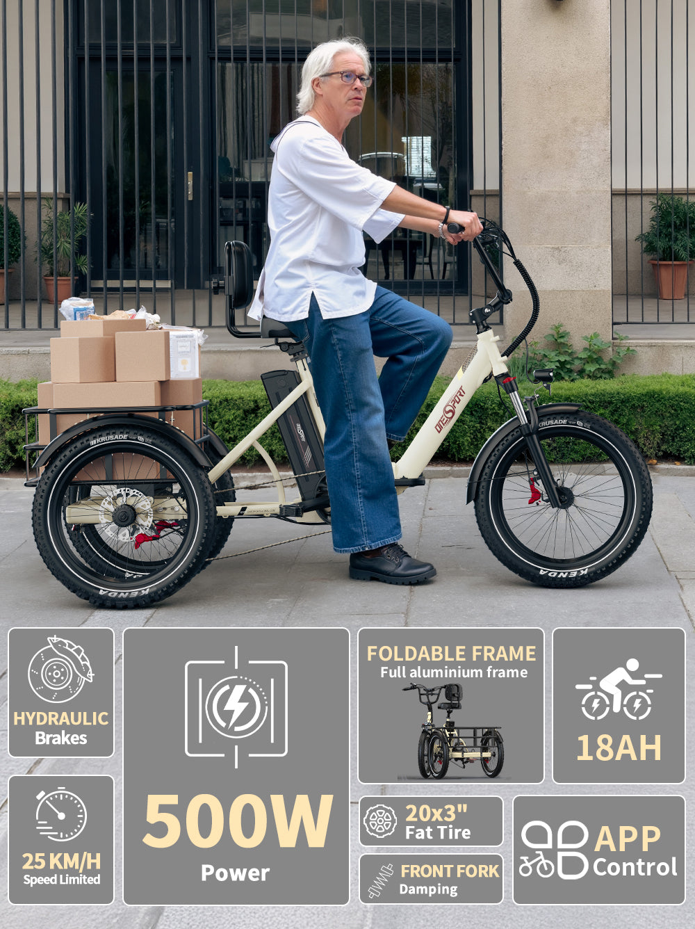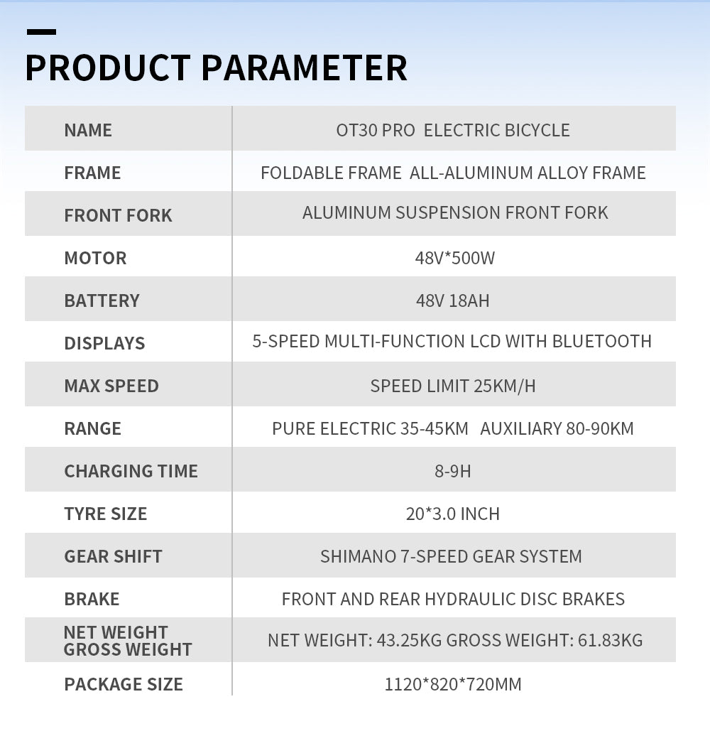 ONESPORT OT30 PRO 20" 3-Wheel Folding E-Trike 500W Motor 48V 18Ah Battery