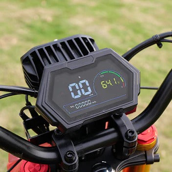 17 MPH(Gear 1): steady start, perfect formastering the basics and finding your balance.28 MPH(Gear 2): Level up and feel the torque asyou carve through the trails.46 MPH(Gear 3):Unleash the full 5000w beast, push the limits, andfeel the ultimate rush.