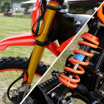Built with a pro-grade full suspension systemfeaturing front hydraulic shocks and rear oil-spring dampening.it effortlessly soaks upimpacts from the roughest terrain, ensuringmaximum stability and pinpoint control at highspeeds.