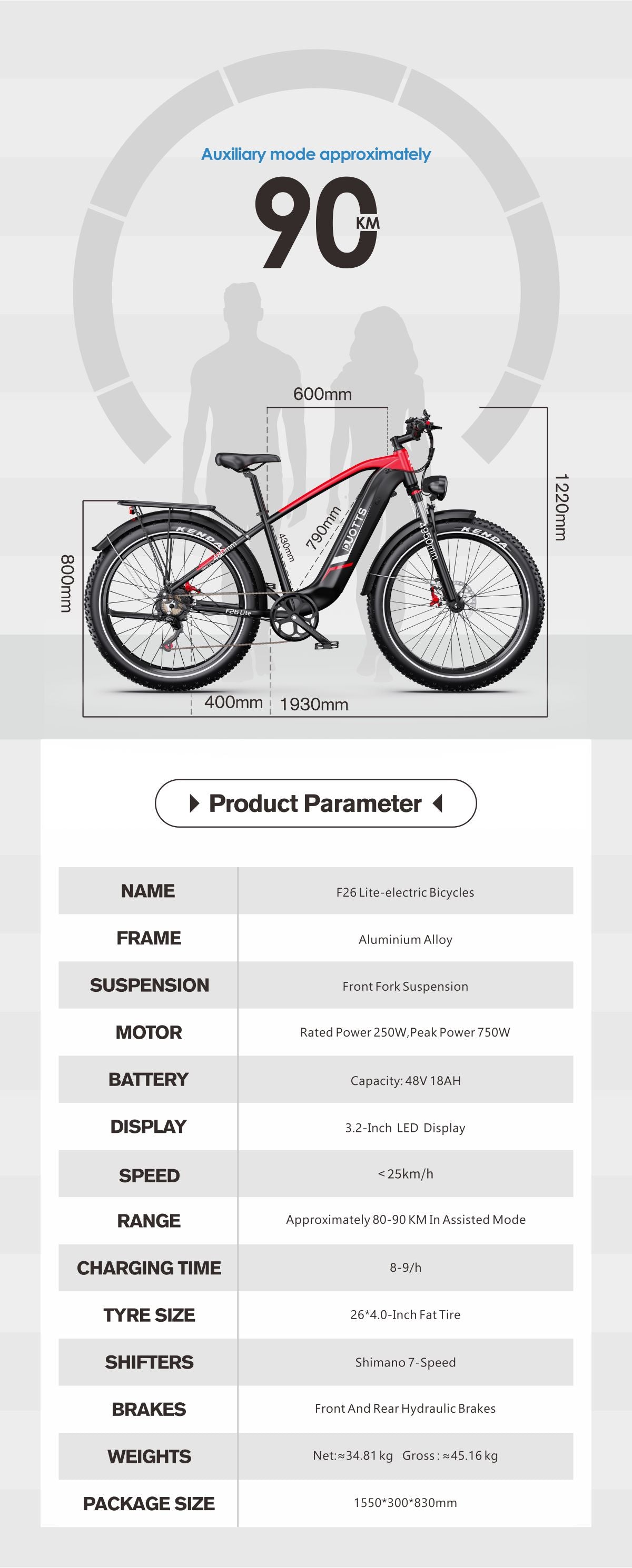 DUOTTS F26 Lite 26" Electric Mountain Bike 500W Motors 48V 18Ah Battery