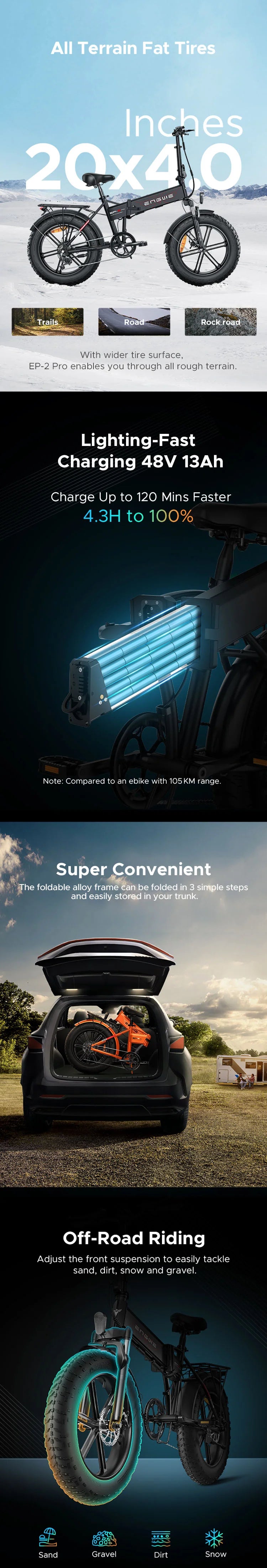 ENGWE EP-2 Pro 20" Fat Tire Folding Electric Bike 250W/750W Motor 48V 13Ah Battery