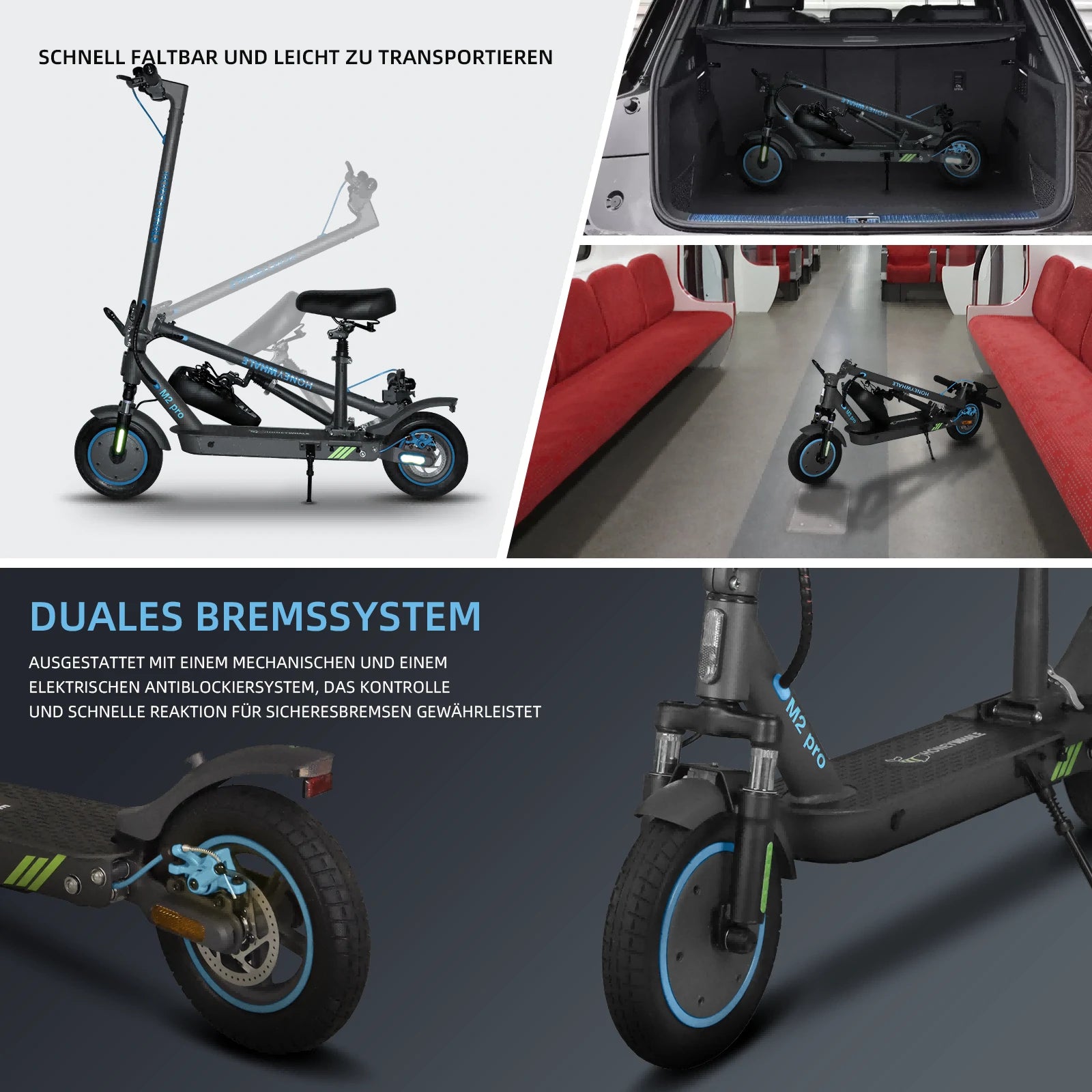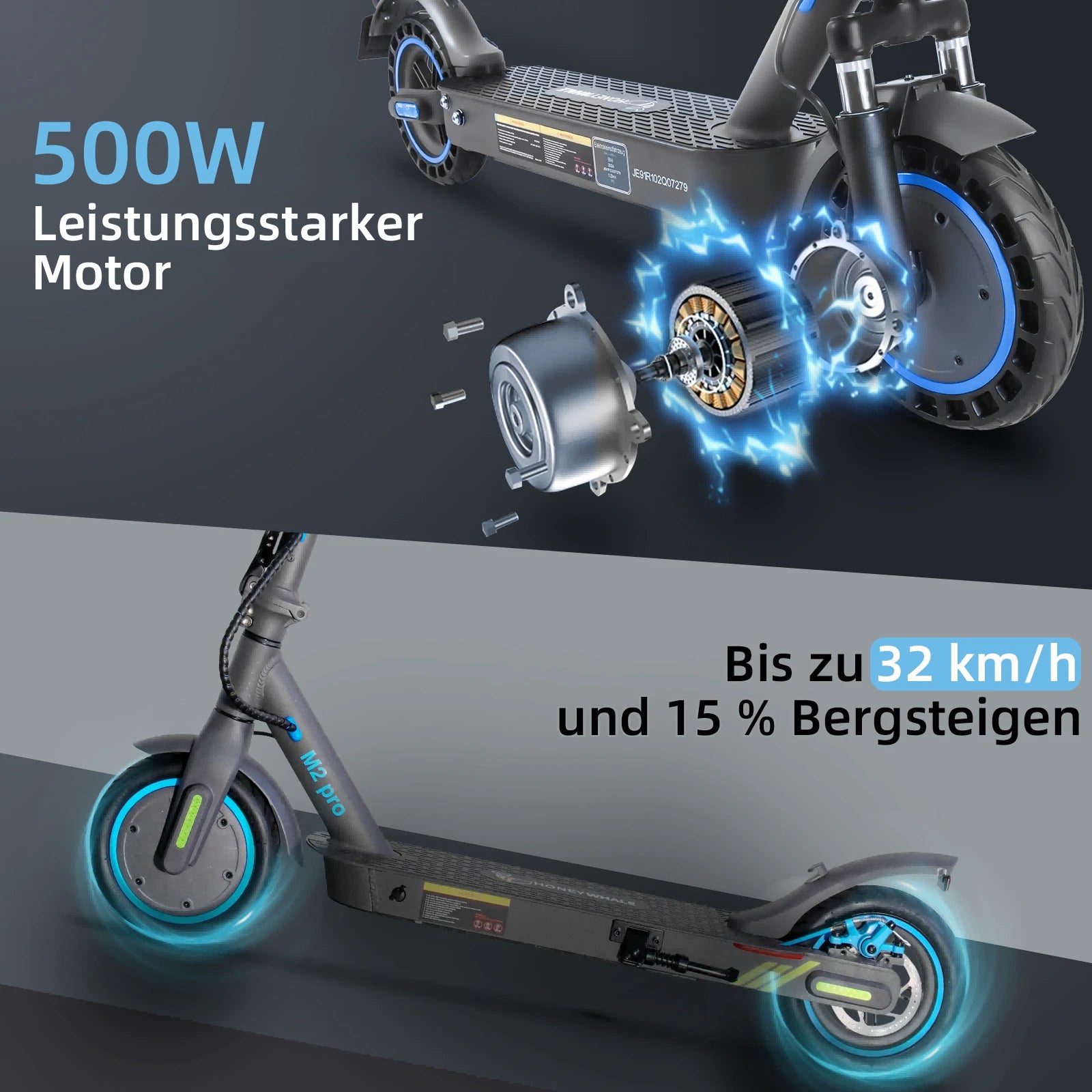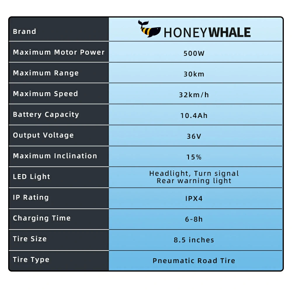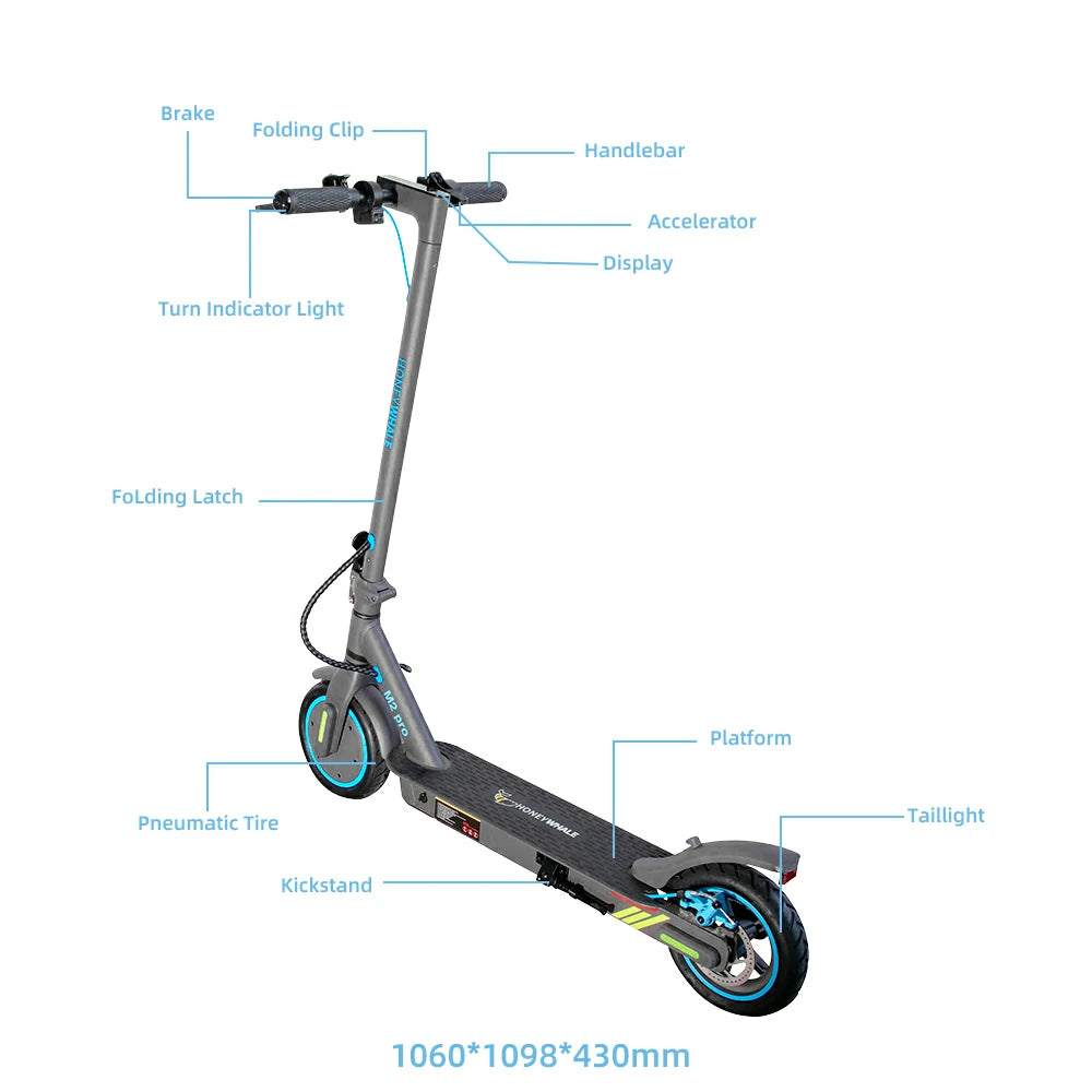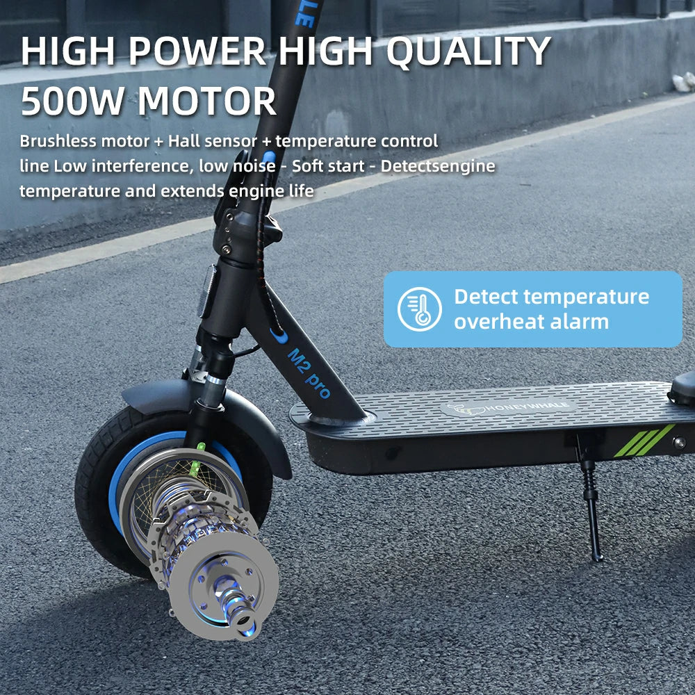 HONEYWHALE M2 Pro Folding Electric Scooter with App Control Bluetooth 500W Peak Motor 36V 7.8Ah Battery