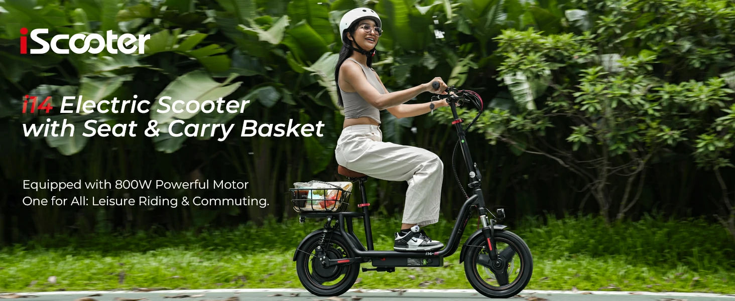 ISCOOTER I14 14" Commuter Electric Scooter With Seat & Basket 800W Motor 54.6V 10Ah Battery