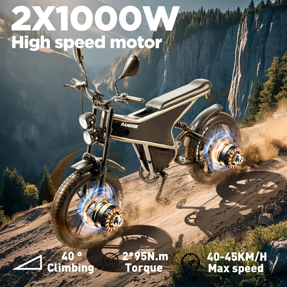 RANDRIDE DM711 20" Retro Fat Tire Electric Bike 500W*2 Dual Motors 48V 20Ah Battery