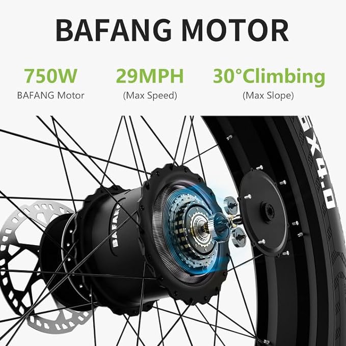 • Motor:750W BAFANG Brushless Rear Hub Motor (1000 peak)