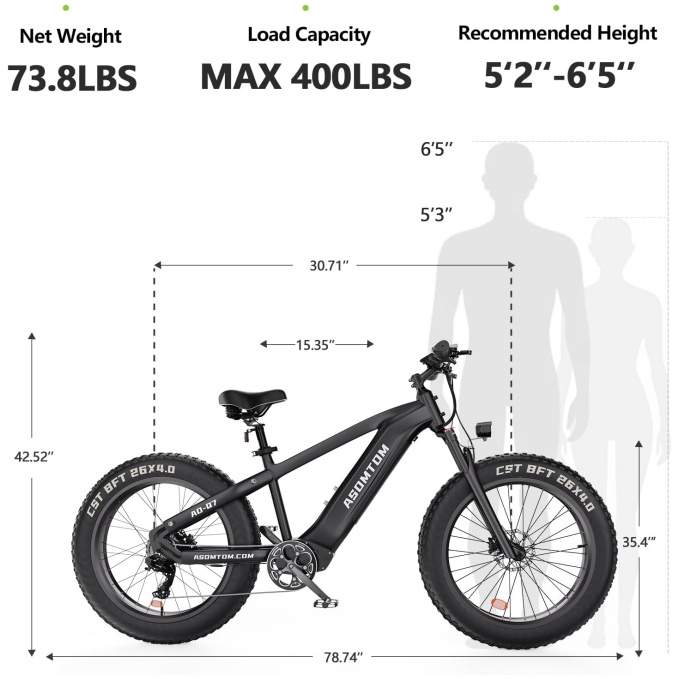 ASOMTOM Q7 26" All-Terrain Electric Bike 750W Motor 48V 15Ah Battery