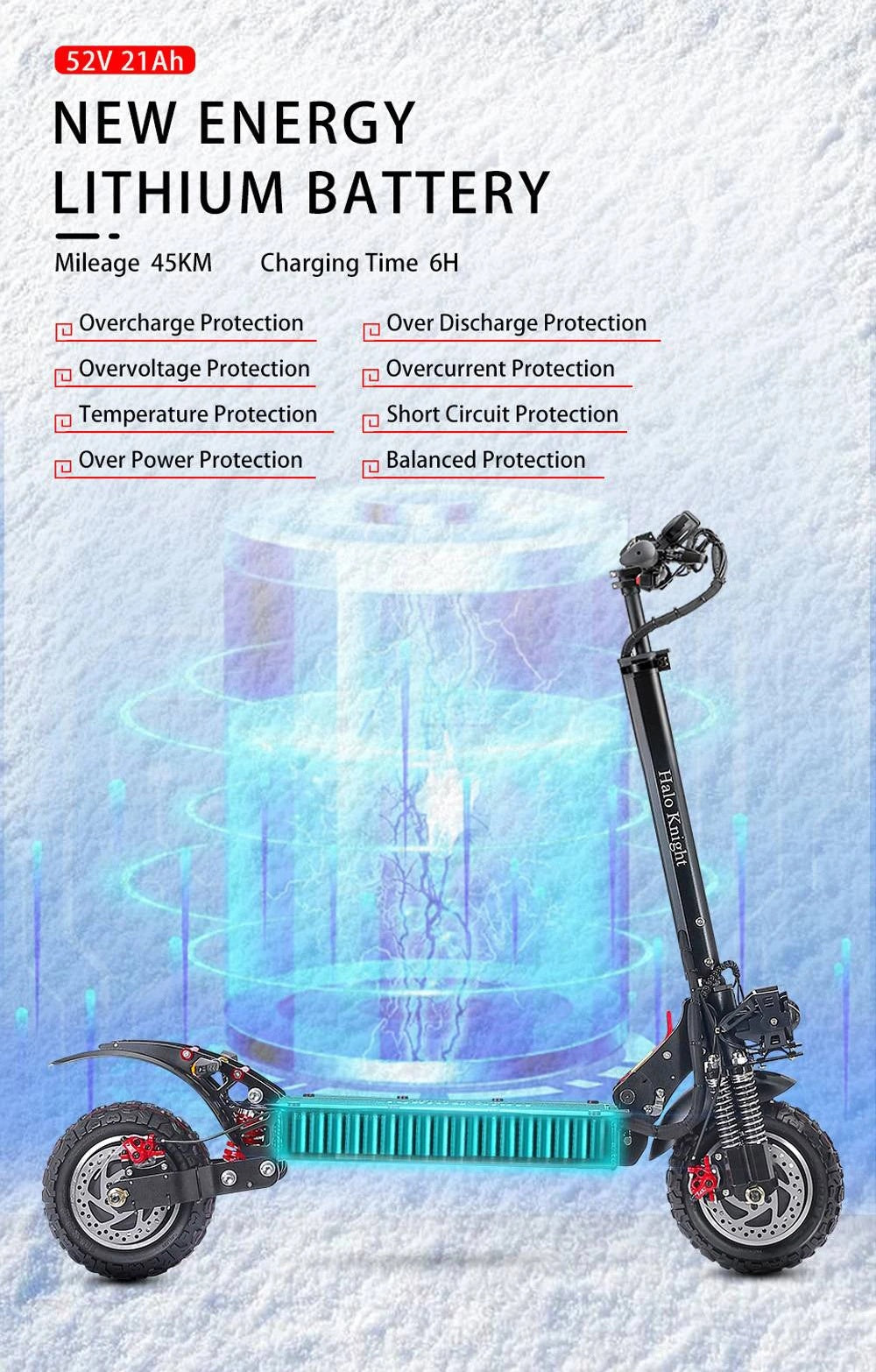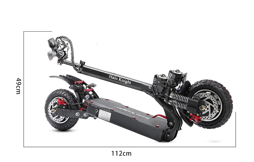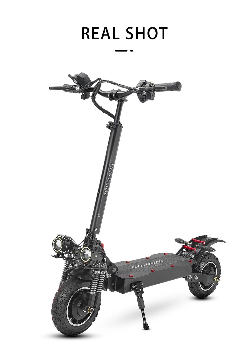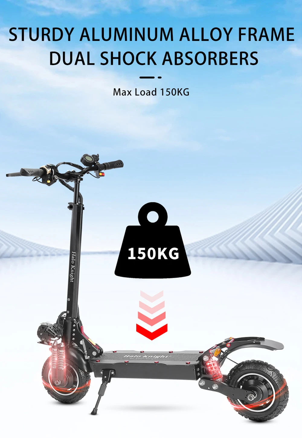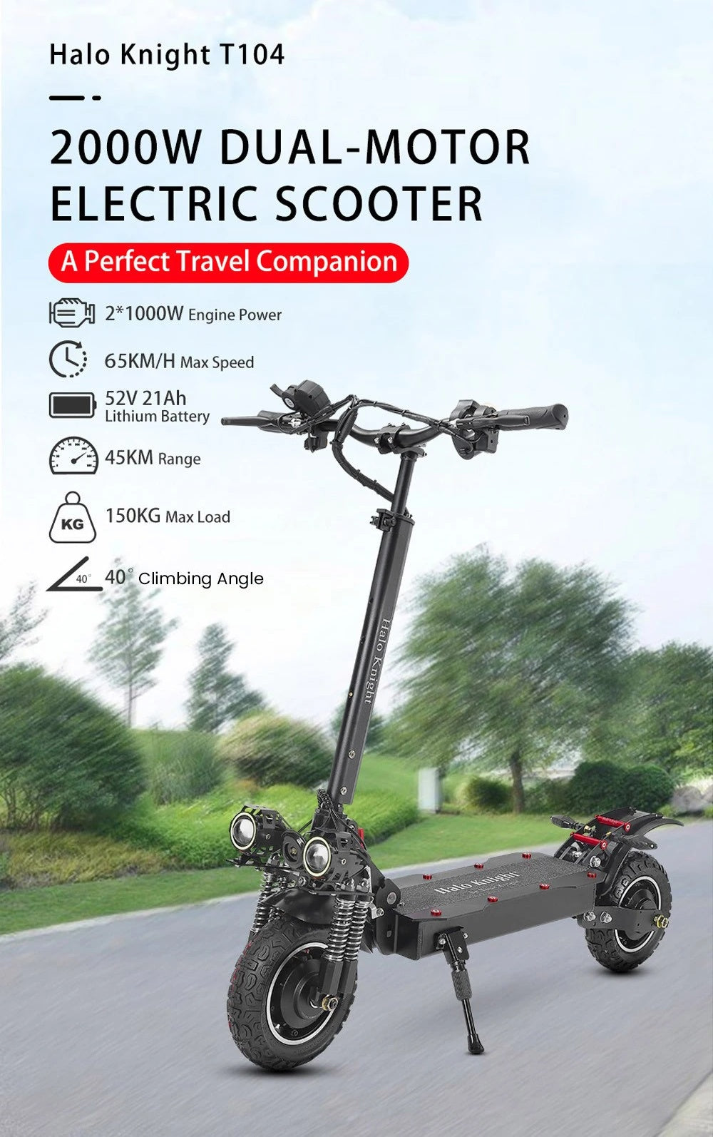 The Halo Knight T104 off-road electric scooter has a maximum speed of 65 km/h and a climbing ability of 40~, making it ideal for adventurous riders.