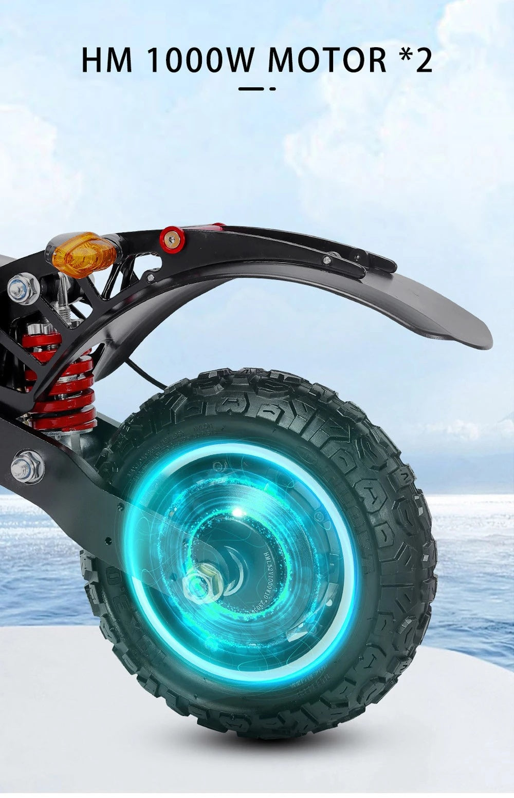 The 52V 21Ah Dongci 18650 battery and HM 52V 1000W*2 motor provide reliable power, while the disc brake system ensures quick and safe stops.