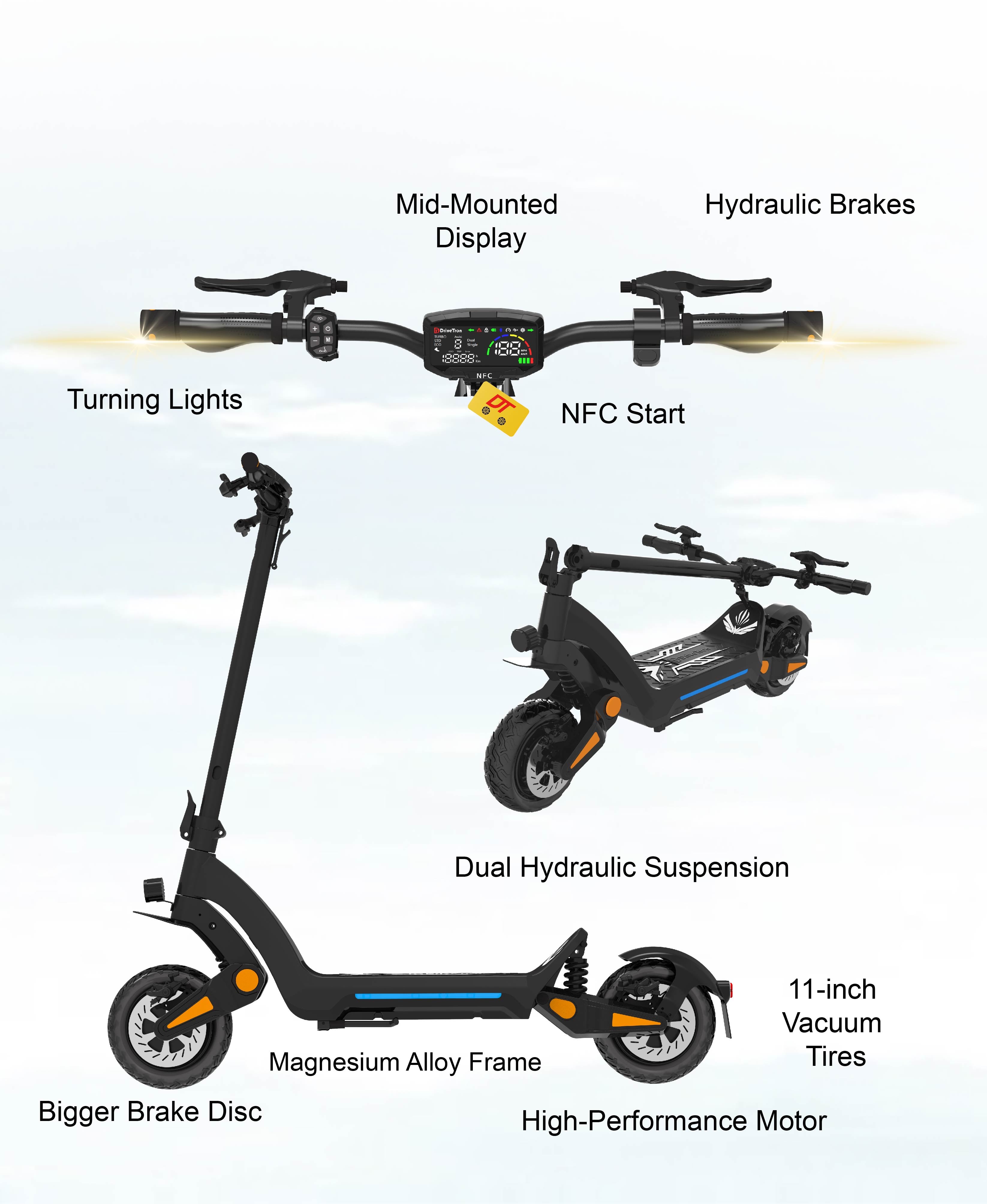 DRIVETRON DT06 11" Off-Road Electric Scooter 1200W*2 Dual Motors 60V 23.4Ah Battery