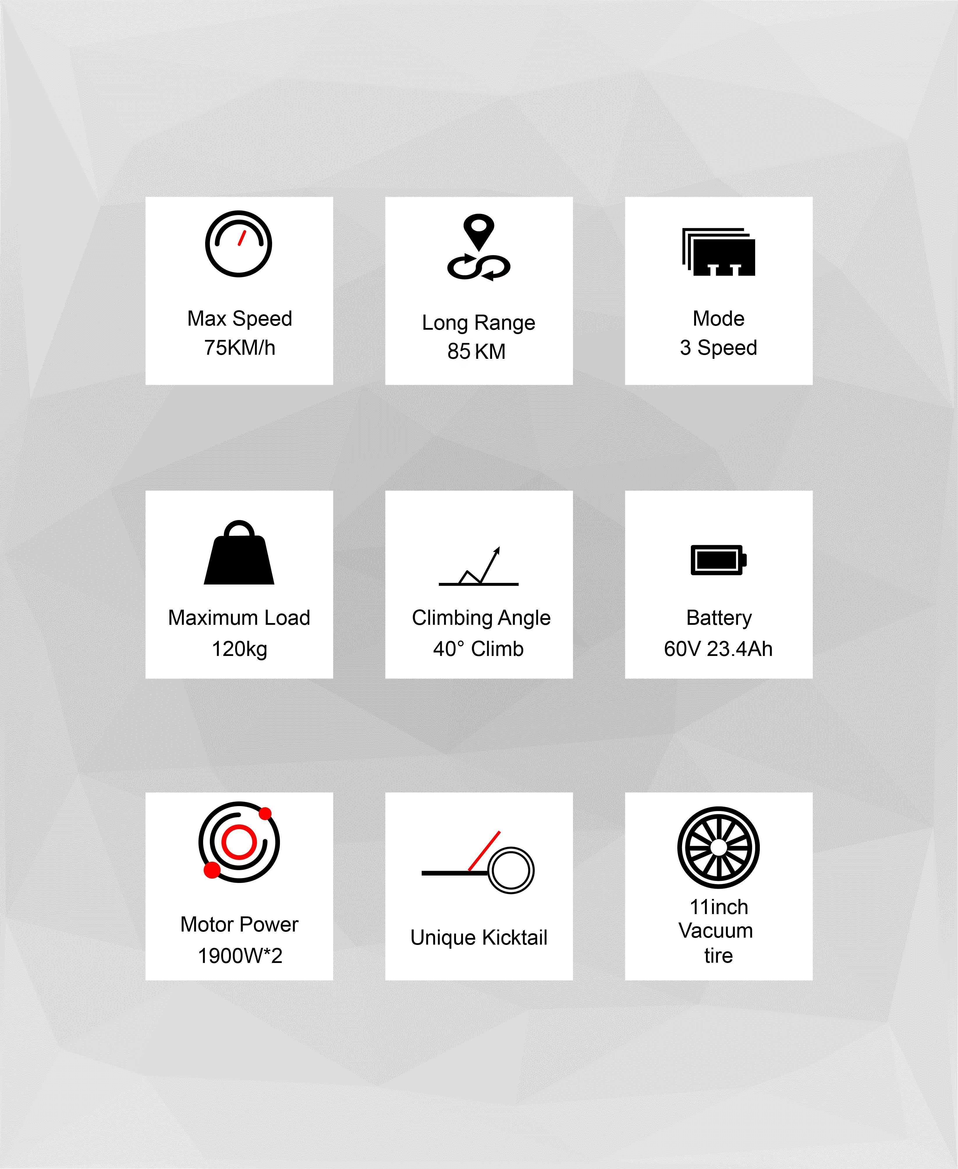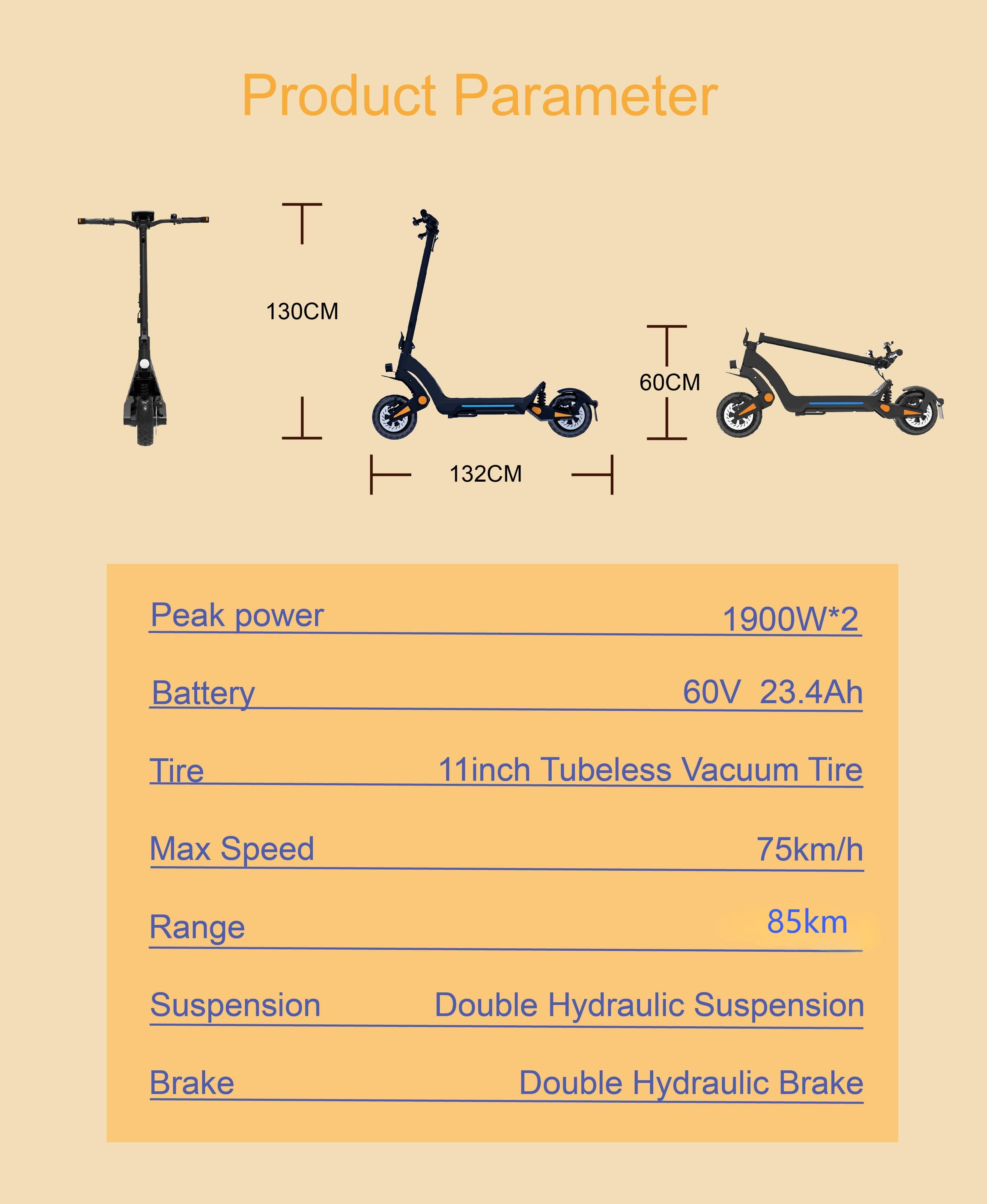 • Motor:1200W*2 Dual Motors(1700W*2 Peak Motors)