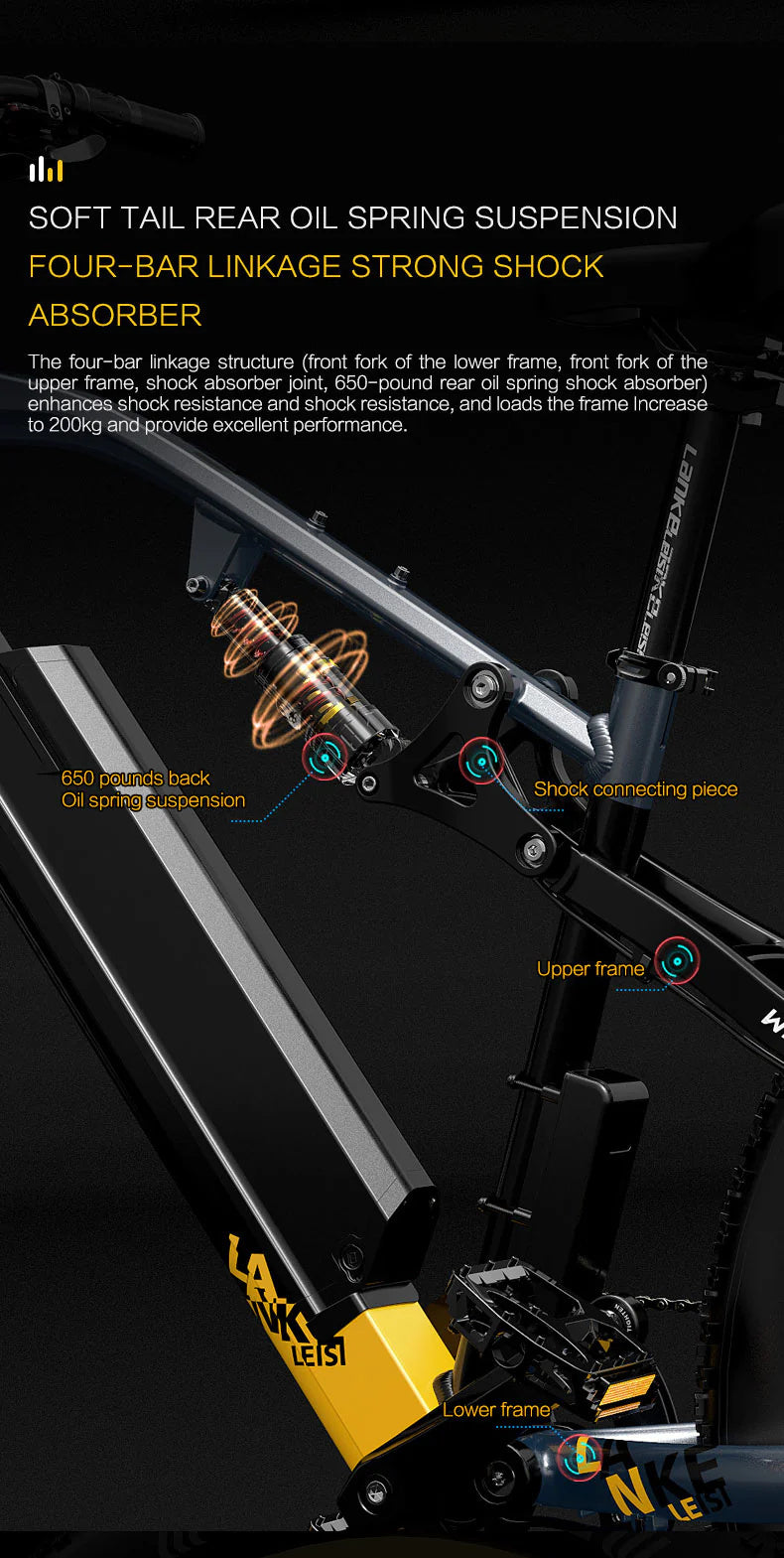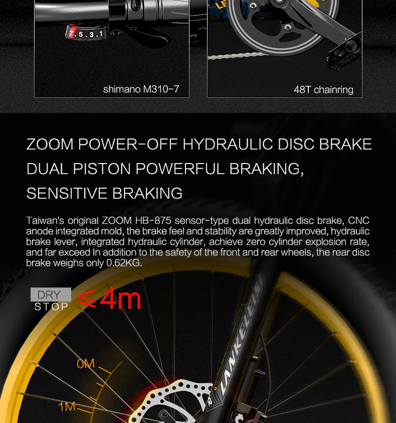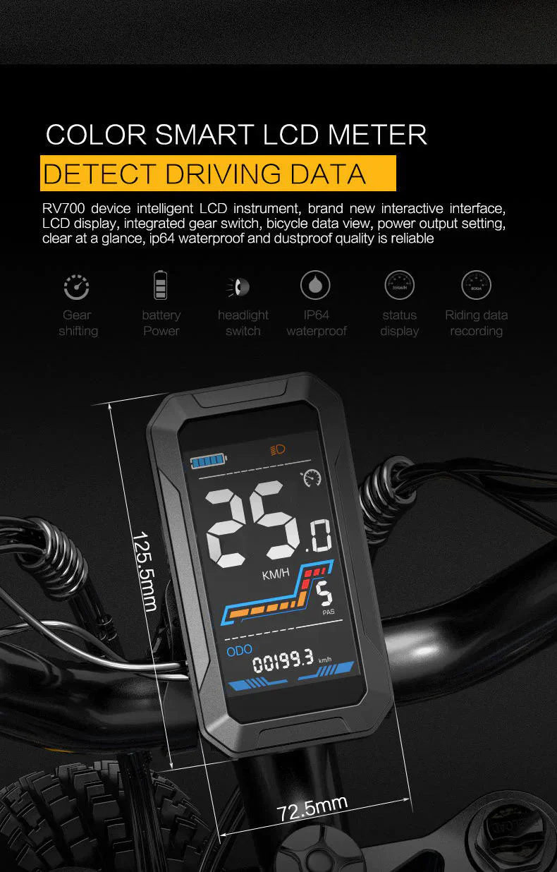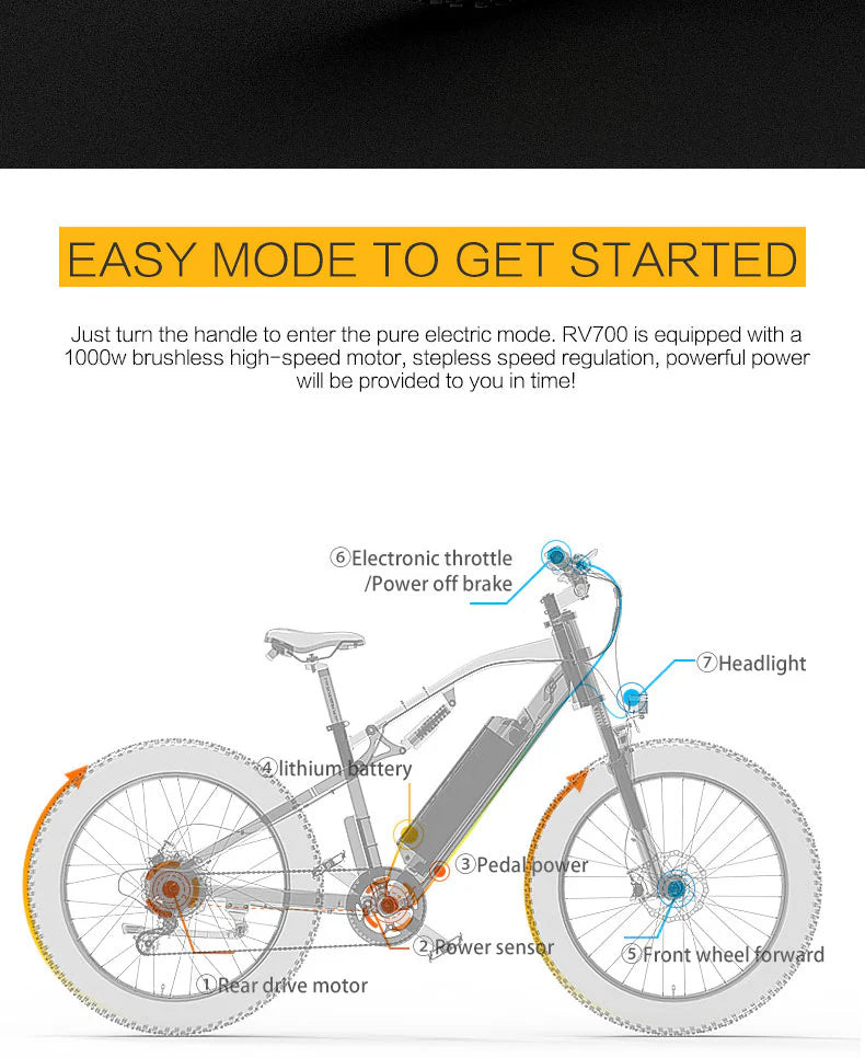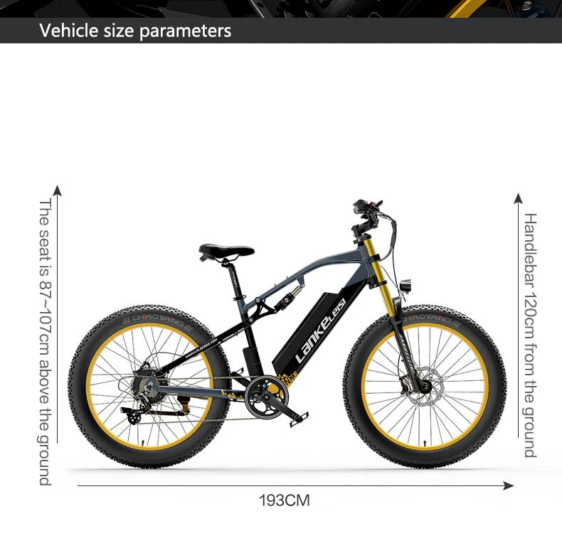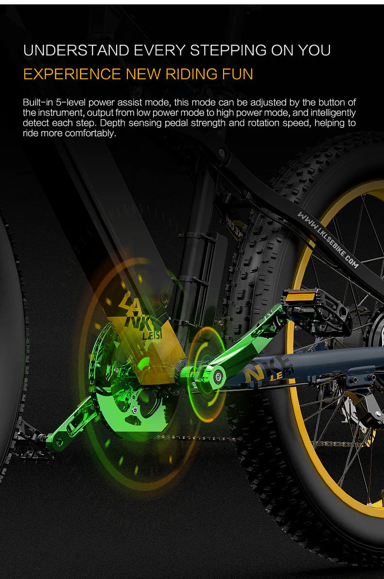 LANKELEISI RV700 26" Fat Tire Mountain Electric Bike 1000W Motor 48V 16Ah Battery