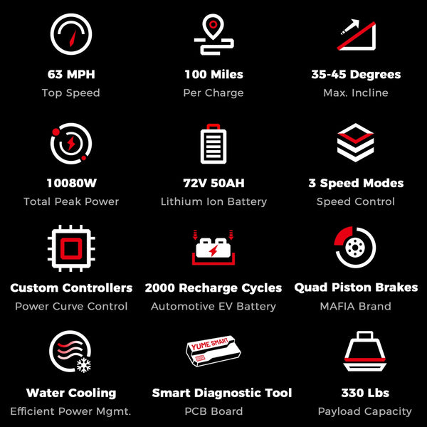 Advanced Control System: The custom-tuned water-cooled controllers are engineered to handle the scooter's immense power and torque requirements, ensuring responsive and refined handling. This advanced system optimizes performance for an exhilarating ride experience.