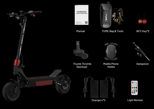 Superior Ride Comfort: With triple hydraulic shock absorbers and a C-shaped suspension, the Predator delivers a smooth, stable ride across any terrain. Its massive 13-inch tires provide increased ground clearance and stability, making every journey an adrenaline-filled adventure.