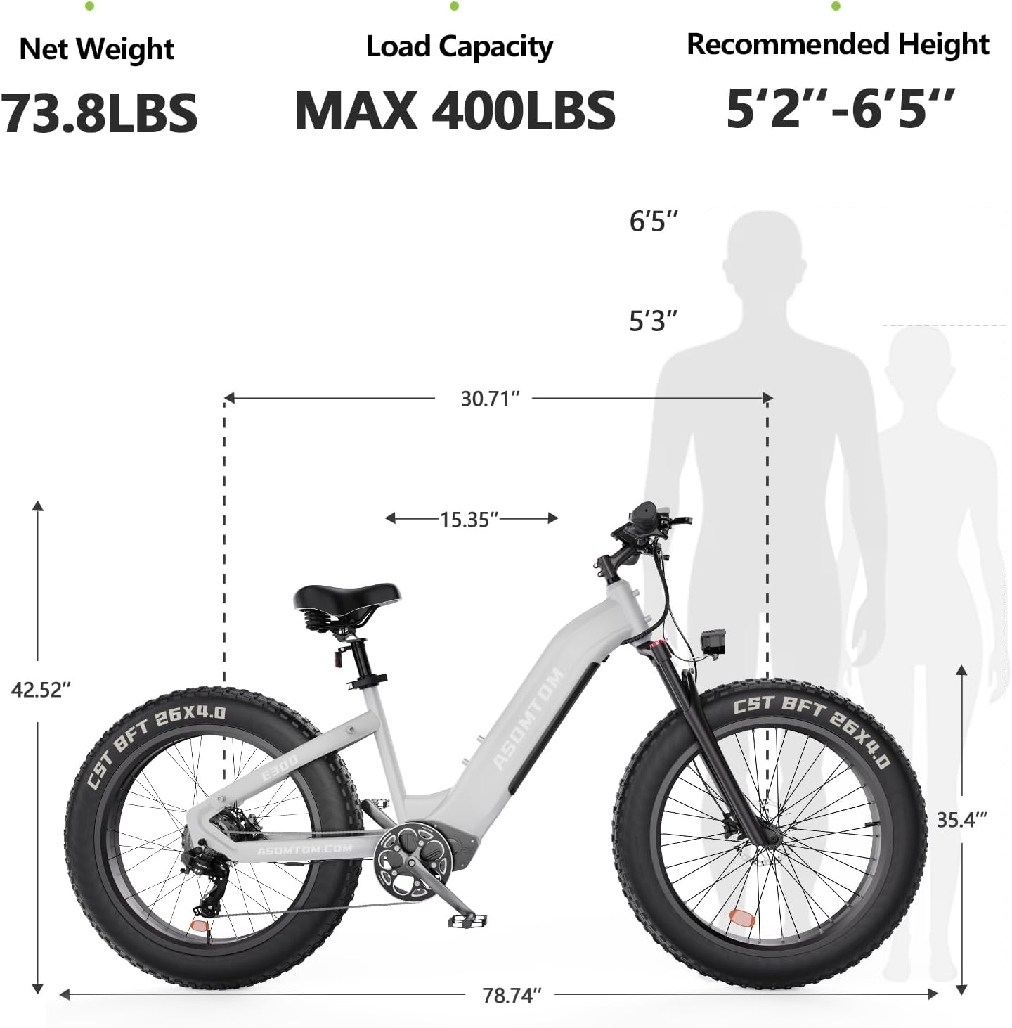 ASOMTOM E300 26" Fat Tire All-terrain Electric Bike 750W Motor 48V 15Ah Battery