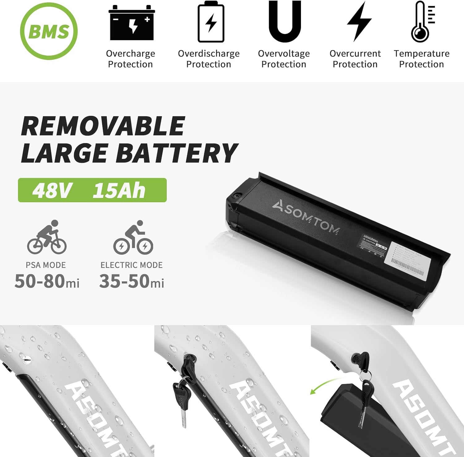 48V 15Ah Removable Lithium-Ion Battery, 744Wh