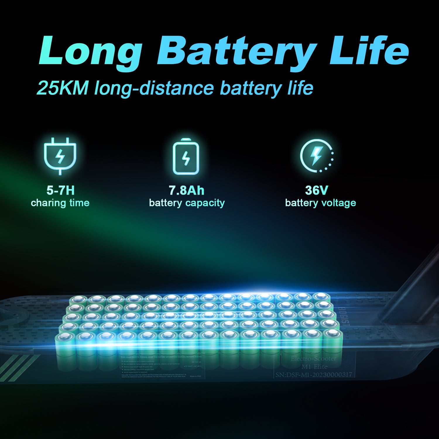 - Voltage: 36V 7.8Ah