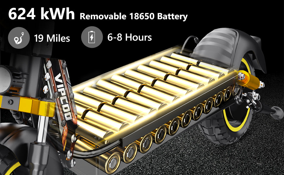 VS1 adult electric scooter is equipped with a 48V/13AH power battery, excellent battery structure with this high range electric scooter can reach a maximum range of 25-28 miles, (based on 140 lbs-160 lbs weight user test data) the range of heavier riders will be relatively reduced. Eat outside, power battery charging time 6-8 hours, faster and more convenient way to replenish energy (battery charging is not recommended to be placed indoor charging).