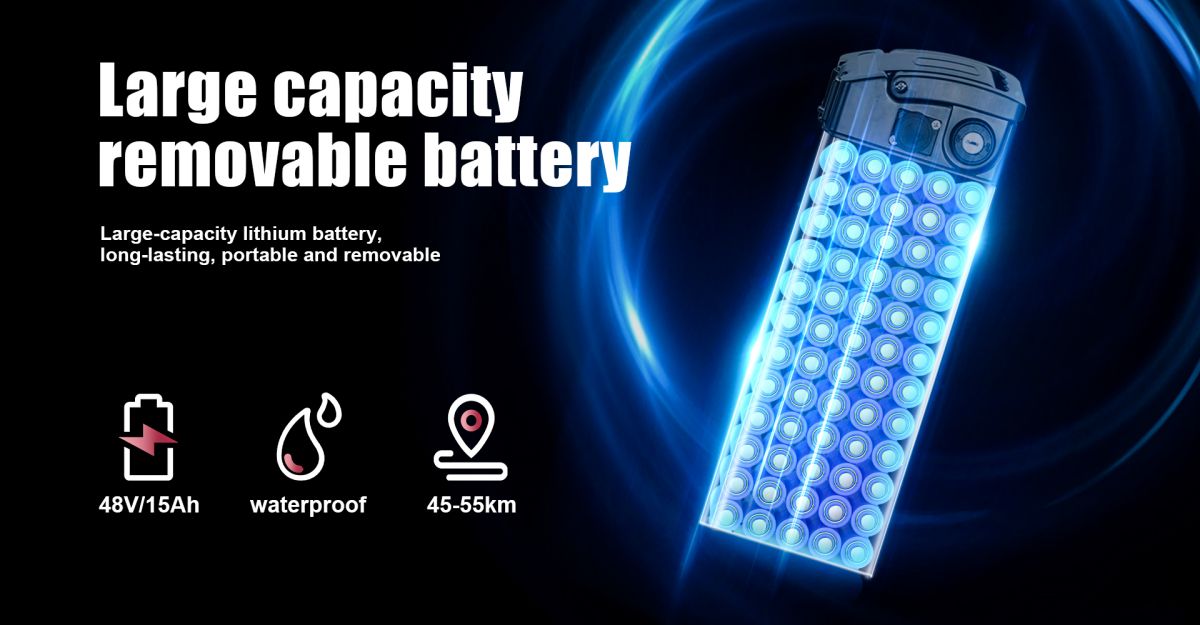 ▽Powerful Electric Bike-Honeywhale S6 Pro▼ Rate Power: 350W, Max Power: 750W, providing reliable support for the maximum speed of 35km/h. Equipped with a removable lithium-ion battery (48V, 15Ah), it can be charged anytime, anywhere. Pure electric driving mode can travel 35-40 km on a full charge, and assist mode allows you to travel further (maximum driving speed depends on road conditions and user weight)