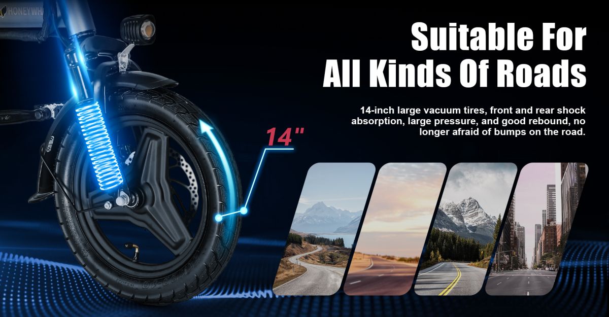 HONEYWHALE S6 Pro 14" Folding Electric Bike 350W Brushless Motor 48V 15Ah Battery