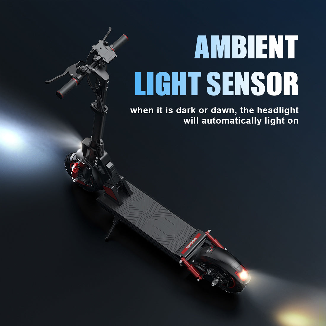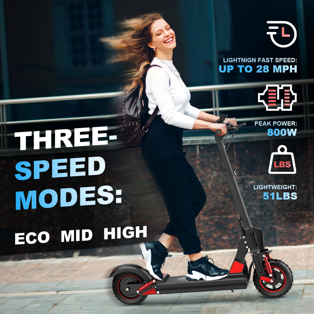 Experience smooth commutes with the Bogist C1 Pro folding electric scooter. Powered by a robust 500W(Peak 800W) brushless motor and 48V 13Ah lithium battery, it can reach speeds up to 25mph and cover over 30 miles on a single charge. Its sturdy yet lightweight aircraft-grade aluminum alloy frame folds down for carrying and storage. Enjoy a comfortable ride with 10-inch pneumatic tires and adjustable handlebar. With double braking and bright LED headlights, keeps you safe while turning heads on the road.