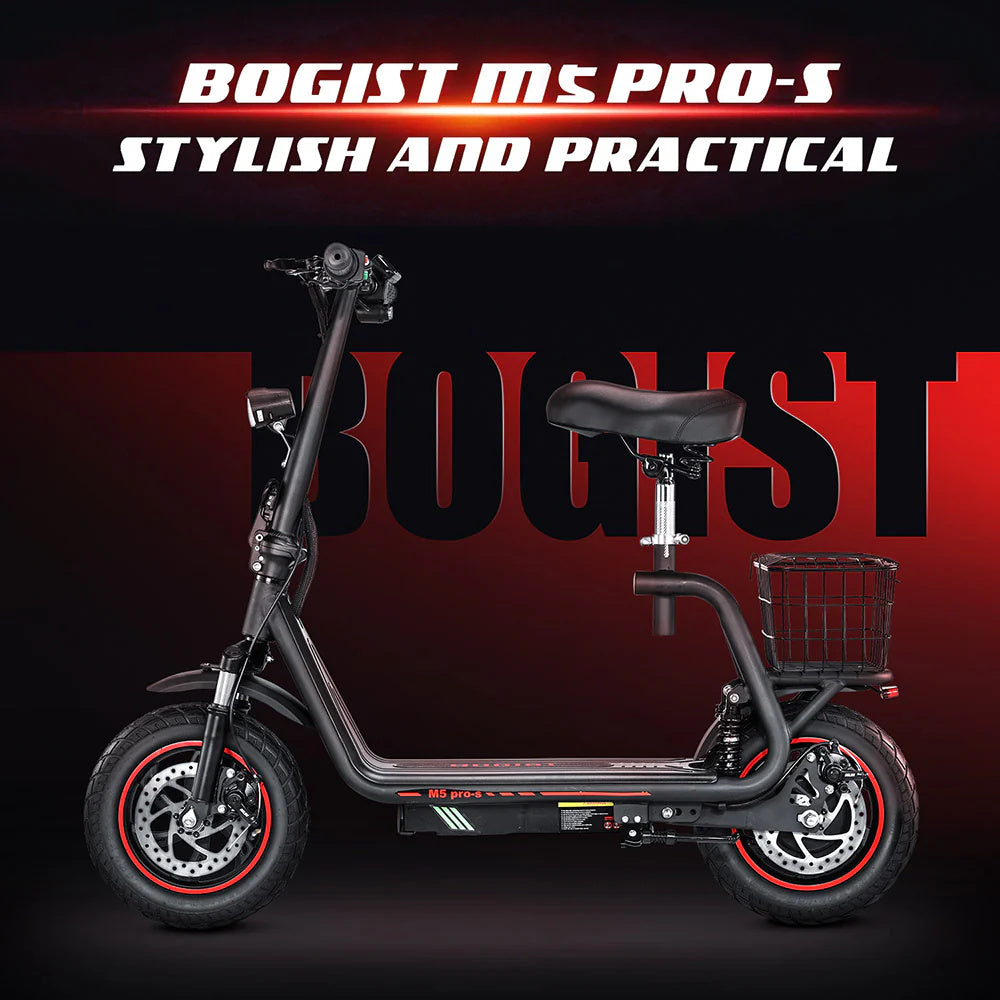 Bogist M5 Pro-S is equipped with a 500W motor, which provides continuous, stable and powerful power support for your riding. With a top speed of up to 48km/h, you can ride outdoors to your heart's content.Bogist S5 Pro-S Electric ScooterAdult electric scooter with a powerful and stable super motor provides 10 degrees of climbing capacity, making climbing hills a breeze.