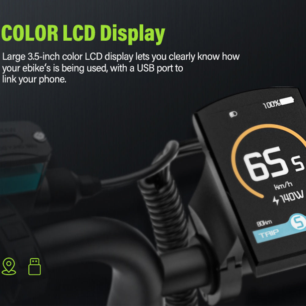 55+miles (88km) in Class-2 throttle-only mode (pure electricity); 100+miles (161km) in Class-1 PAS (pedal assist)