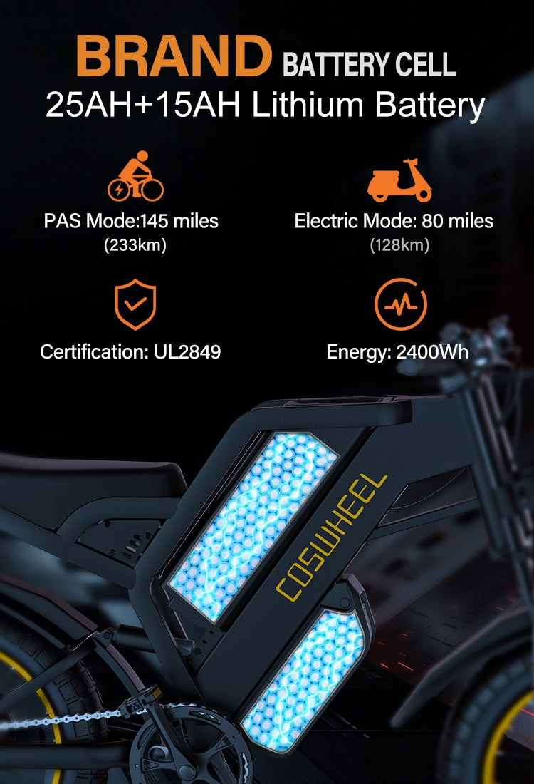 COSWHEEL GT20 Max 20" Off Road Electric Bike Peak 2000W Motor 60V 40Ah Battery