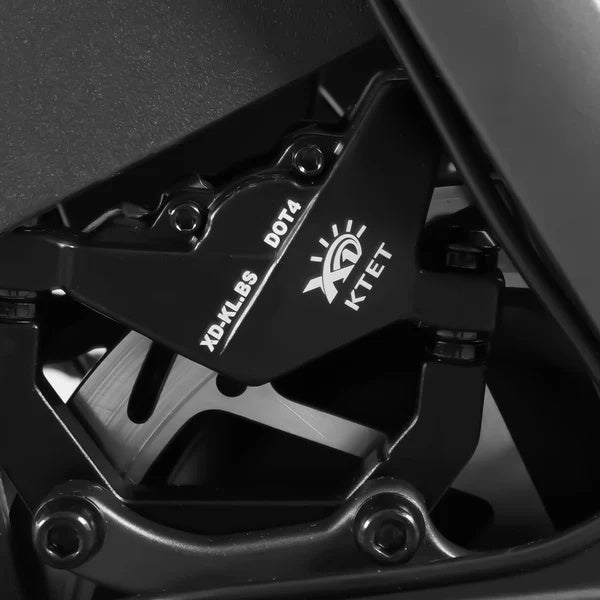 It uses heavy-duty hydraulic brakes and is equipped with 180mm brake discs, which provide more stable braking and shorter braking distance.
