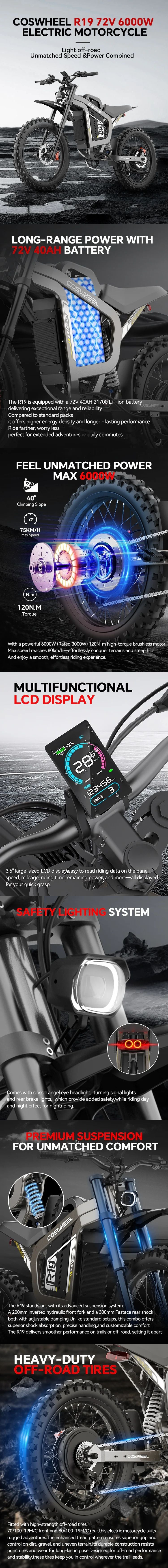 COSWHEEL R19 19" Off Road Electric Bike 3000W Motor 72V 40Ah Battery