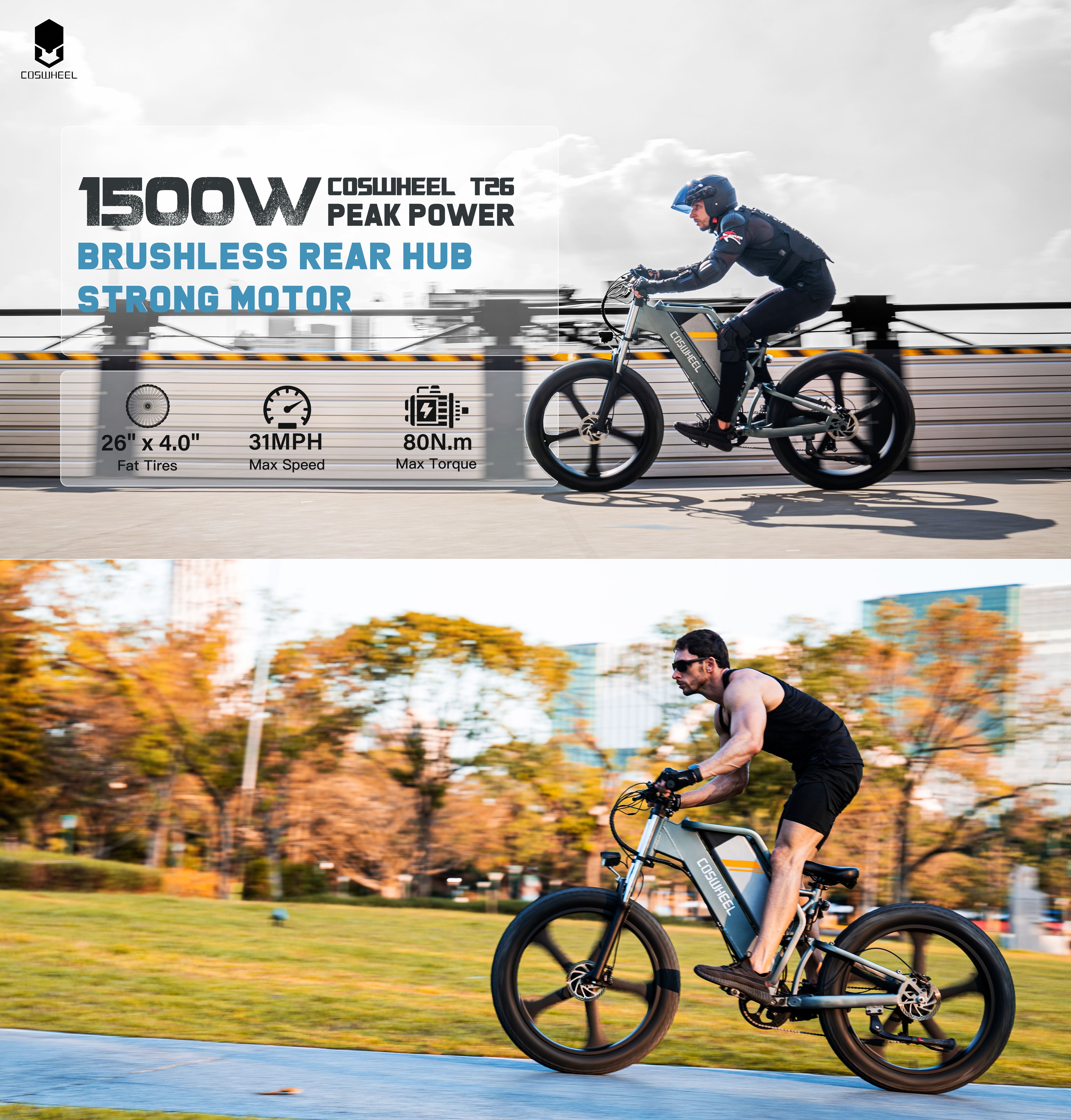 COSWHEEL T26 26" All-Terrain Electric Bike Peak 1500W Motor 48V 25Ah Battery