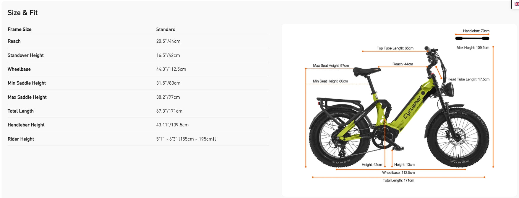 CYRUSHER Kommoda Pro 20§ Fat Tire Electric Bike 250W Motor 52V 20Ah Battery