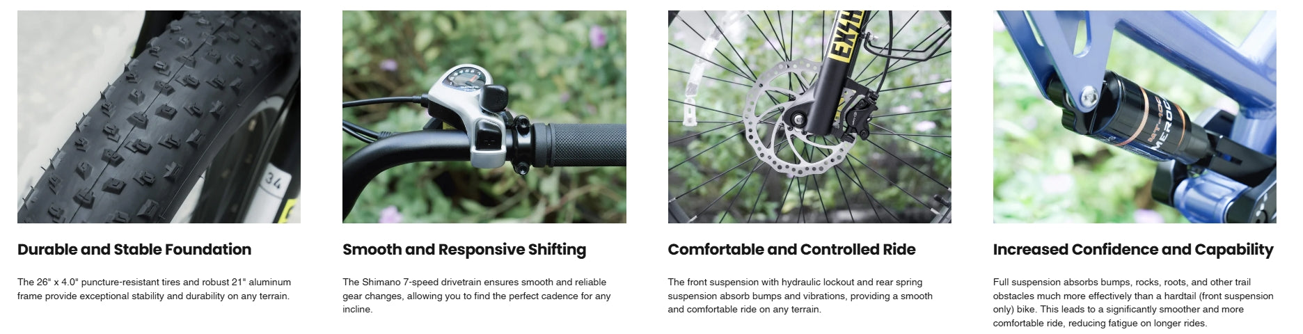 CYRUSHER Rover 26" Fat Tires Electric Bike Full Suspension E-Bike 750W 52V 15.6Ah Battery