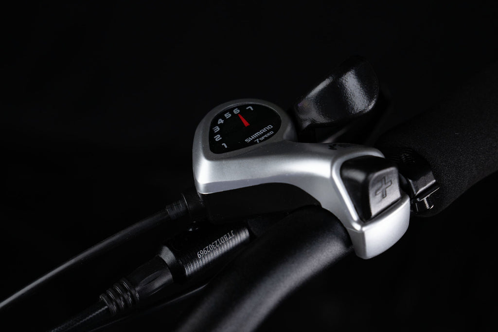 The Shimano 7-speed derailleur provides smooth and accurate gear shifts, allowing riders to adjust to different terrains and riding preferences effortlessly.