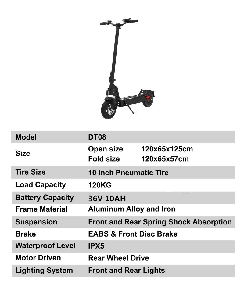 DRIVETRON DT08 10" Folding Electric Scooter 350W Motor 36V 10Ah Battery