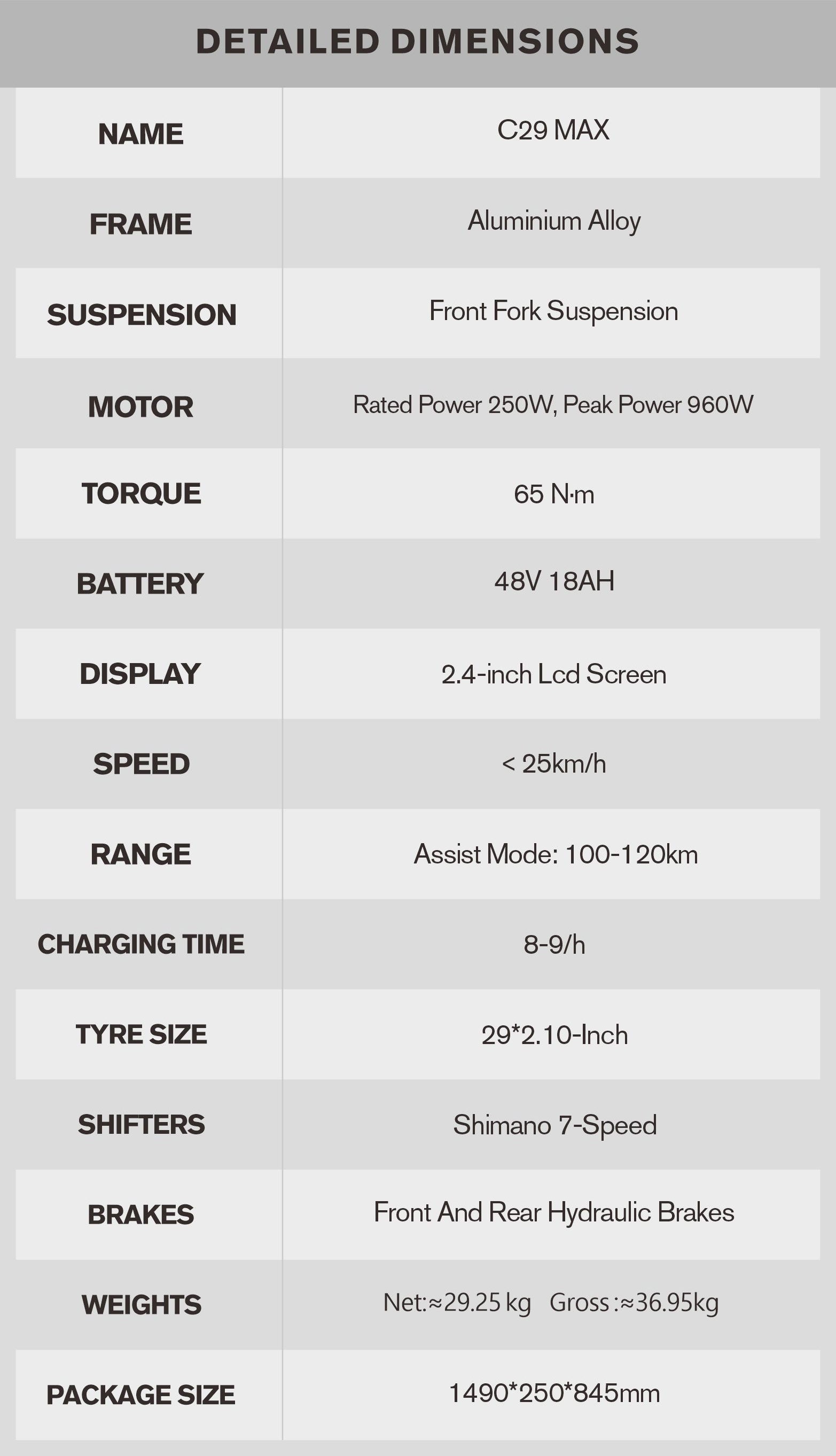 DUOTTS C29 Max 29" Mountain Electric Bike 960W Peak Motor 48V 18Ah Battery