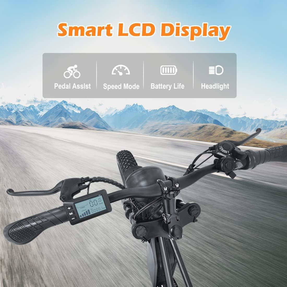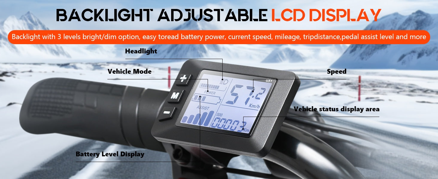 ?[5 riding modes and smart LCD display] The e-bikes provides 5 riding modes: pure electric, pedal assist, foot operation, cruise control mode and 7-speed gearbox and electric 5-speed mode, which can adjust the appropriate speed according to the 12-speed gearbox. The e-bike is equipped with a smart LCD display, through the smart LCD display, you can see the speed, battery power, pedal assist level and mileage at a glance, allowing you to better understand this Electric bike!