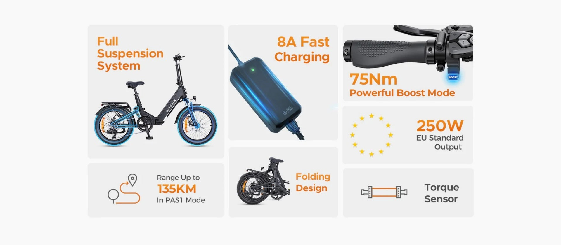 ENGWE L20 3.0 Boost 20" Step-Thru Electric Bike 250W Motor 48V 13.5Ah Battery