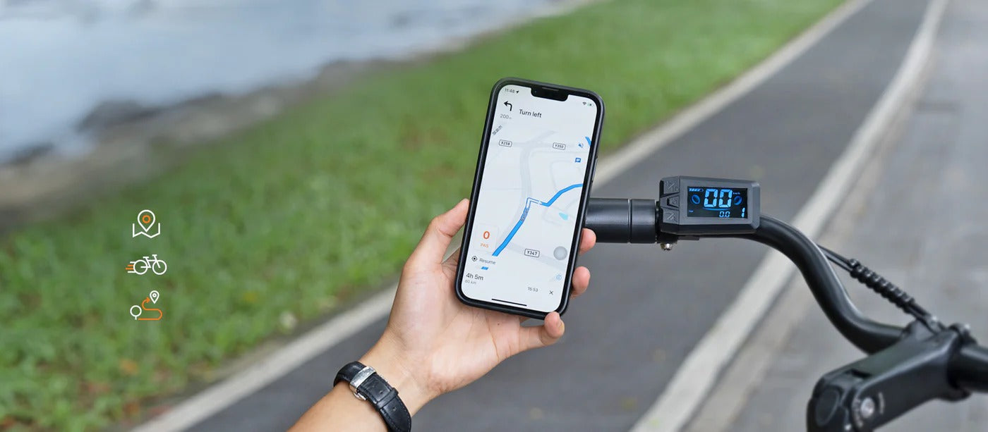 Real-time ride data is clearly shown on the display, connected through the App.