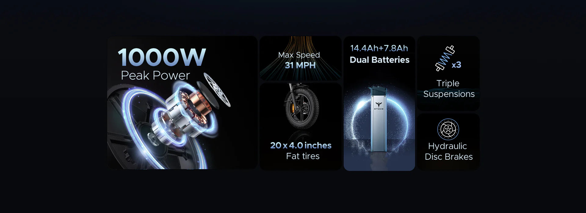 Experience the power and unstoppable speed of the ENGWE electric bike X20, an impressive Electric mountain bike with a top speed of 31 mph and a mind-blowing maximum power of 1000W.?
