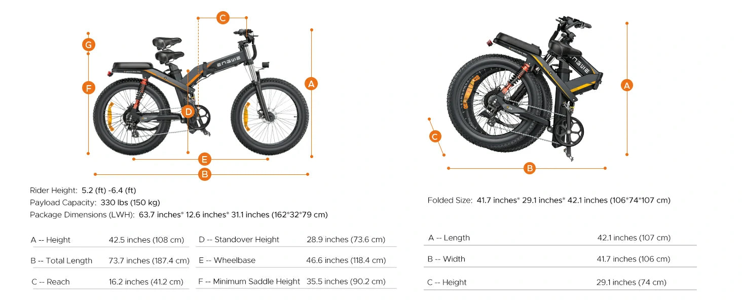ENGWE X24 24" Fat Tire Folding Electric Bike MTB 1200W (Peak) Motor 48V 29.2Ah Dual Battery