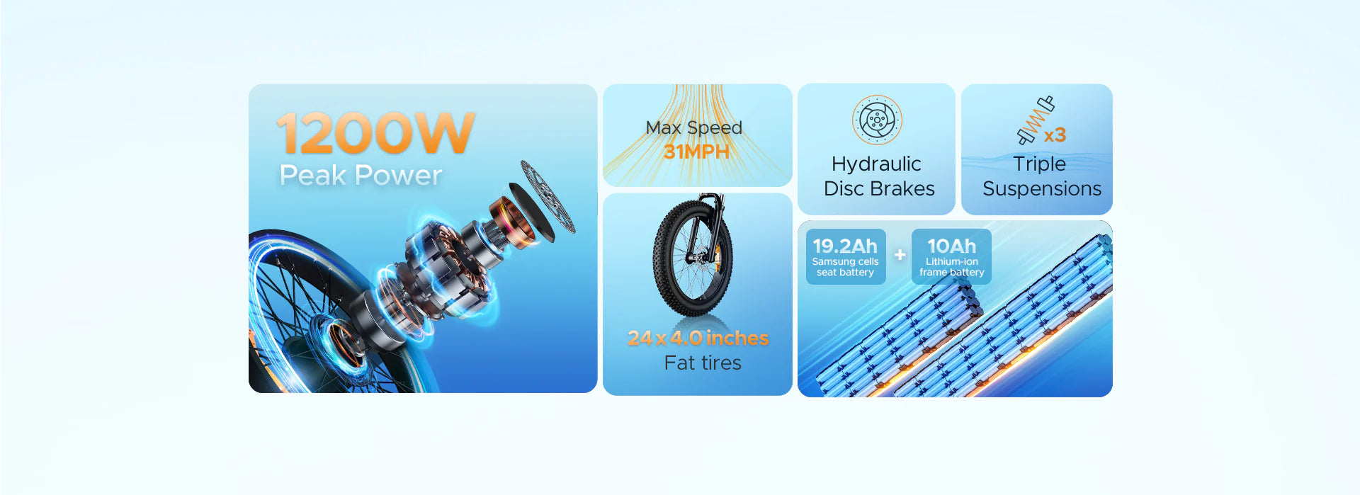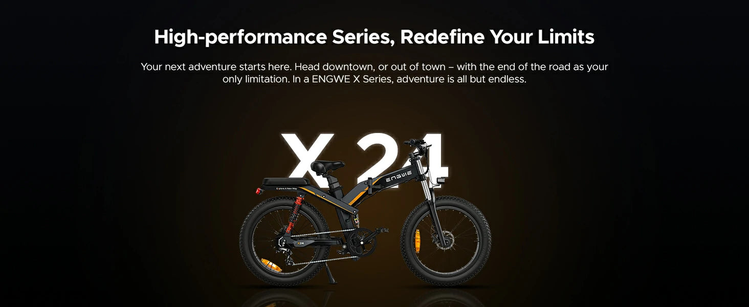 Experience the power and unstoppable speed of the ENGWE electric bike X24, an impressive Electric mountain bike with a top speed of 31 mph and a mind-blowing maximum power of 1200W.?