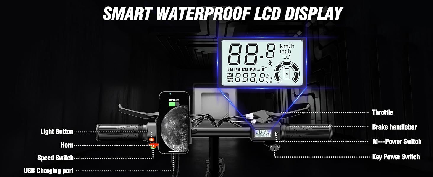 - Additional Features: Adjustable Handlebars, Dual Suspension, Headlight, Dual Disc Brake, Adjustable Seat
