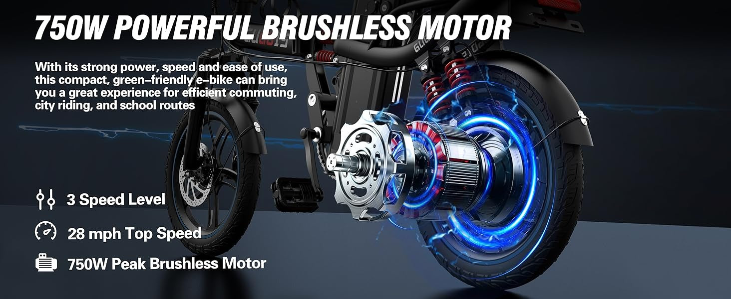 [OUTSTANDING PORTABILITY]GugoIs folding electric bike features foldable handlebars, pedals and height adjustable seat. It not only provides comfort for riders of different heights, but also allows for easy storage. Whether you want to put it in the boot of your car, take it to the subway/lift, or keep your flat tidy, this 68lbs 0.24m3 bike is your ideal first choice