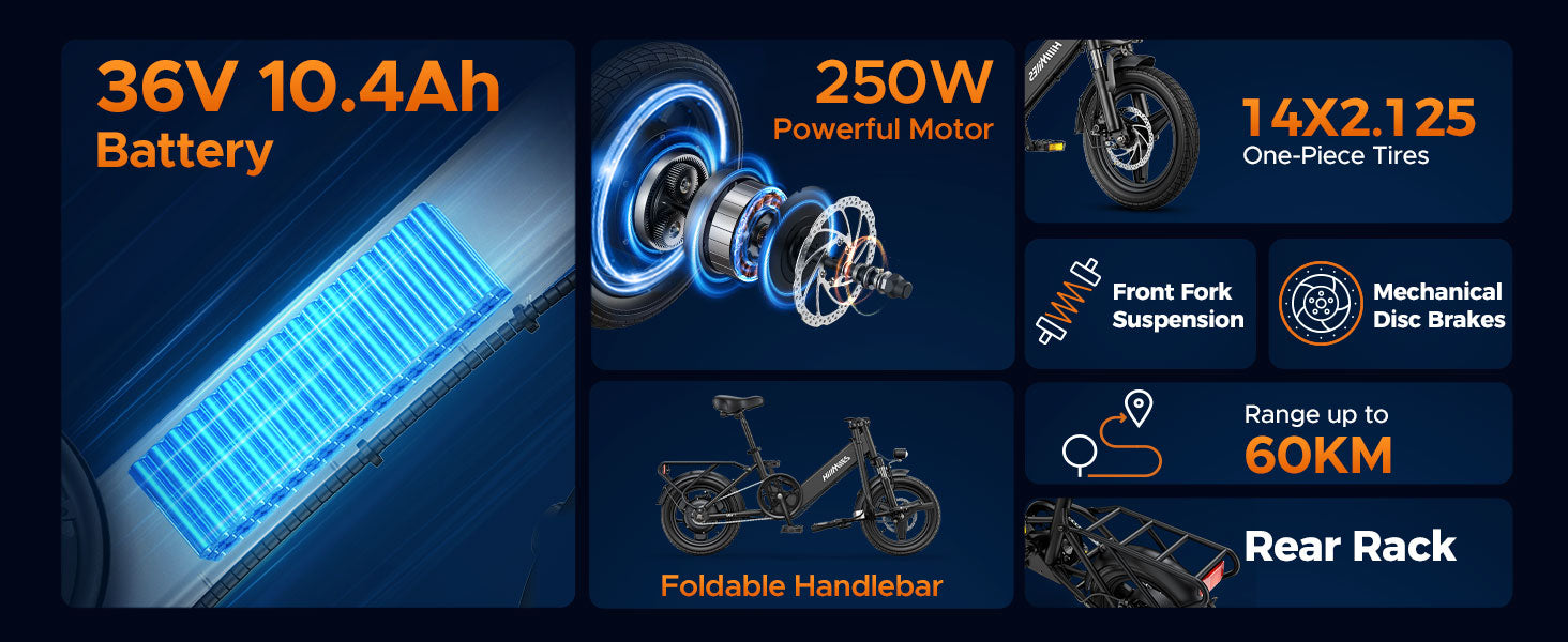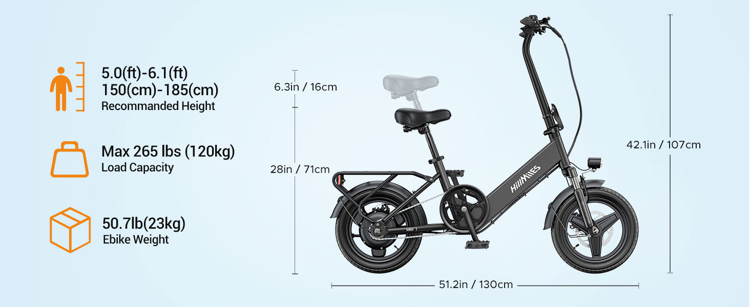 HILLMILES Mile 1 14" Step-through E-bike For Women 250W Motor 36V 10.4Ah Battery