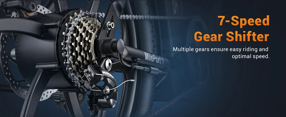 HillMiles MilePort 1 adult electric bike is provided by a Shimano 7-speed derailleur which delivers reliable and accurate gear shifting.