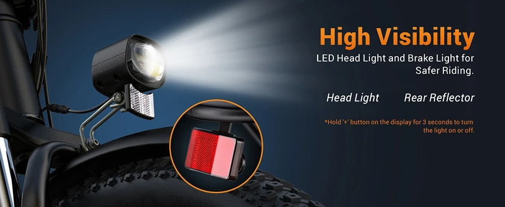 The LED headlight and break light are featured for safer riding, making you safe for night riding.