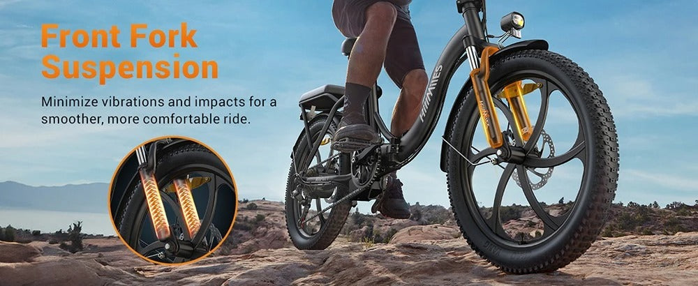 The front fork suspension absorbs bumps for your smoother and more stable riding.