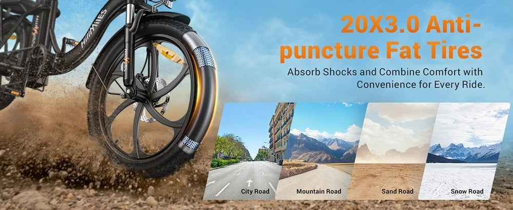 The 20*3.0-inch tires are wear-resistant, and durable, which can mitigate your anxiety of safety riding.