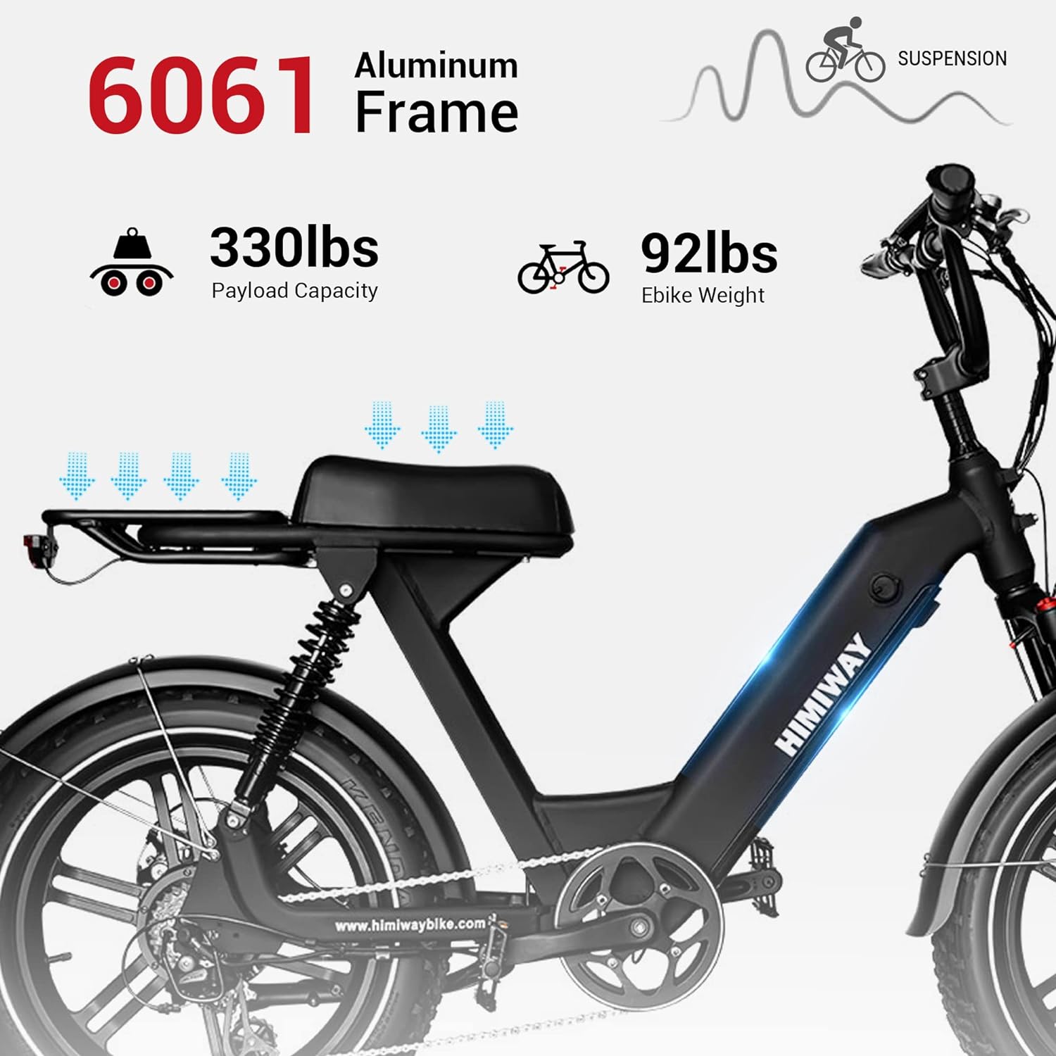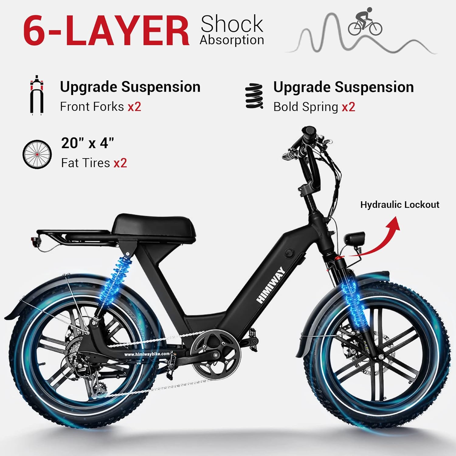 HIMIWAY Escape Pro 20" Long Range Moped-Style Electric Bike 750W Motor 48V 17.5Ah Battery